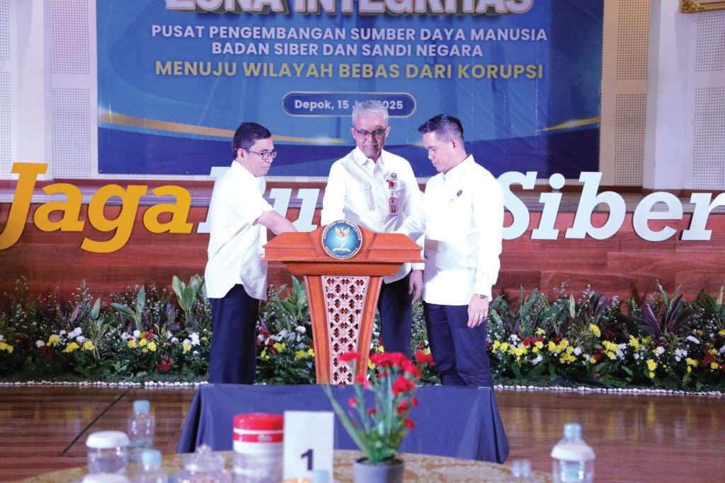 Depok, BSSN.go.id – Pusat Pengembangan Sumber Daya Manusia Badan Siber dan Sandi Negara (Pusbang SDM BSSN) mencanangkan Pembangunan Zona Integritas Menuju Wilayah Bebas dari Korupsi (WBK), dari Aula dr. Roebiono Kertopati Kantor BSSN Sawangan, Depok, Jawa Barat pada Selasa (15/07/2025). Kegiatan ini merupakan langkah strategis dalam upaya memperkuat tata kelola pemerintahan yang bersih, akuntabel, dan