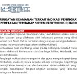 EDUKASI MASYARAKAT Peringatan Keamanan Ransomware LOCKBIT 2.0 April 11, 2022 | Edukasi Masyarakat Panduan Keamanan Twitter January 25, 2022 | Edukasi Masyarakat Panduan Keamanan Pengguna YouTube January 25, 2022 | Edukasi Masyarakat Panduan Keamanan Pengguna Facebook January 25, 2022 | Edukasi Masyarakat Panduan Keamanan Siber untuk Bisnis Kecil January 25, 2022 | Edukasi Masyarakat Peringatan Indikasi Peningkatan Aksi Peretasan Sistem Elektronik di Indonesia October 27, 2021 | Edukasi Masyarakat Sebelumnya Page1 Page2 Page3 Page4 Page5 Page6 … Page12 Selanjutnya